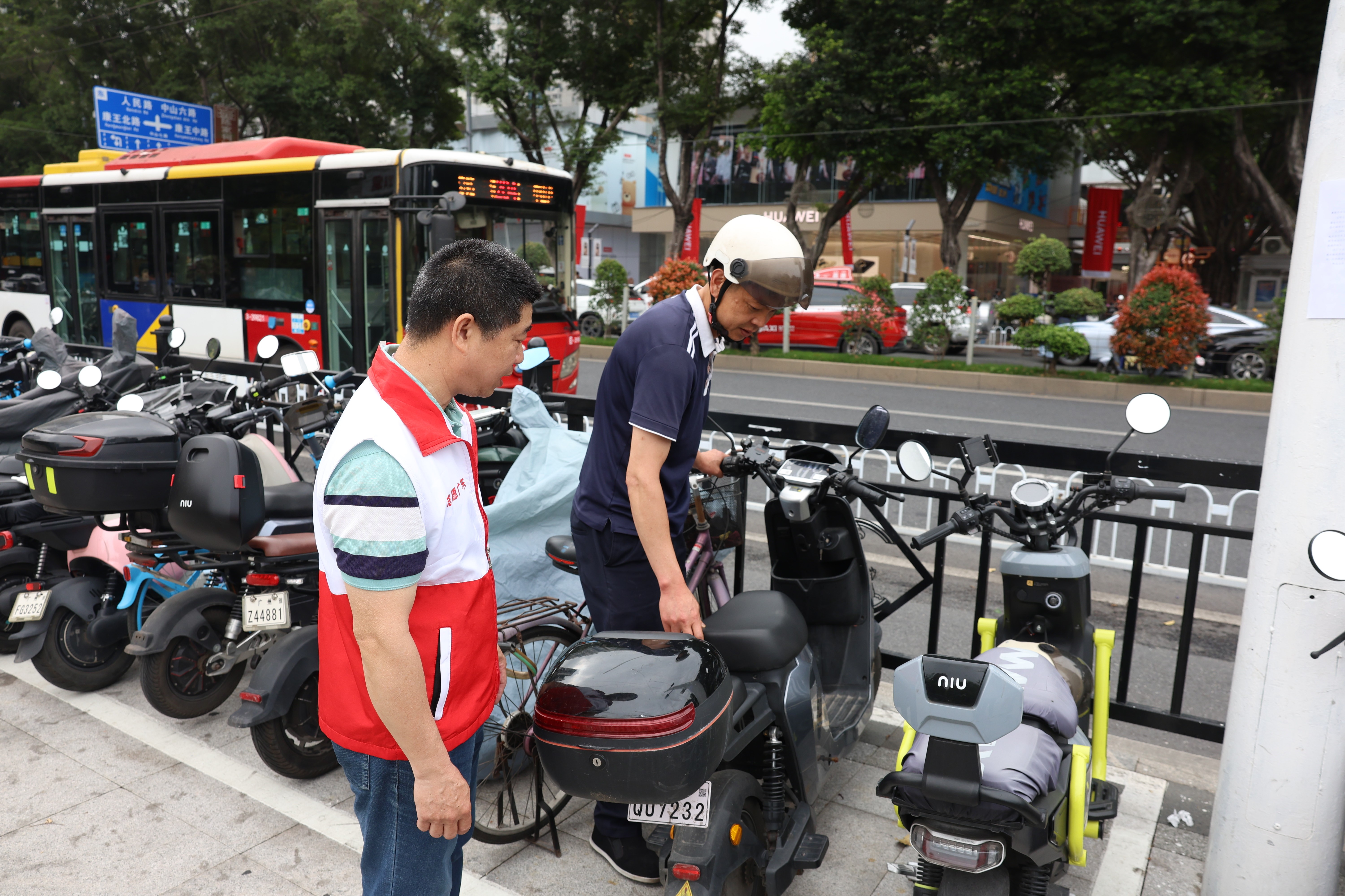 疏导方面,全区深挖公共空间潜力,充分利用城市“边角料”区域,盘活人行道沿线、闲置绿化带等闲置空间,累计划设非机动车停放区超2780处,总面积约7.5万平方米,新增停车位约6.3万个,实现地铁站口停放区域全覆盖。常态劝导方面,各街道组织志愿者、网格员,在商圈、学校、地铁站口等重点区域开展常态化劝导,引导市民规范停放车辆。